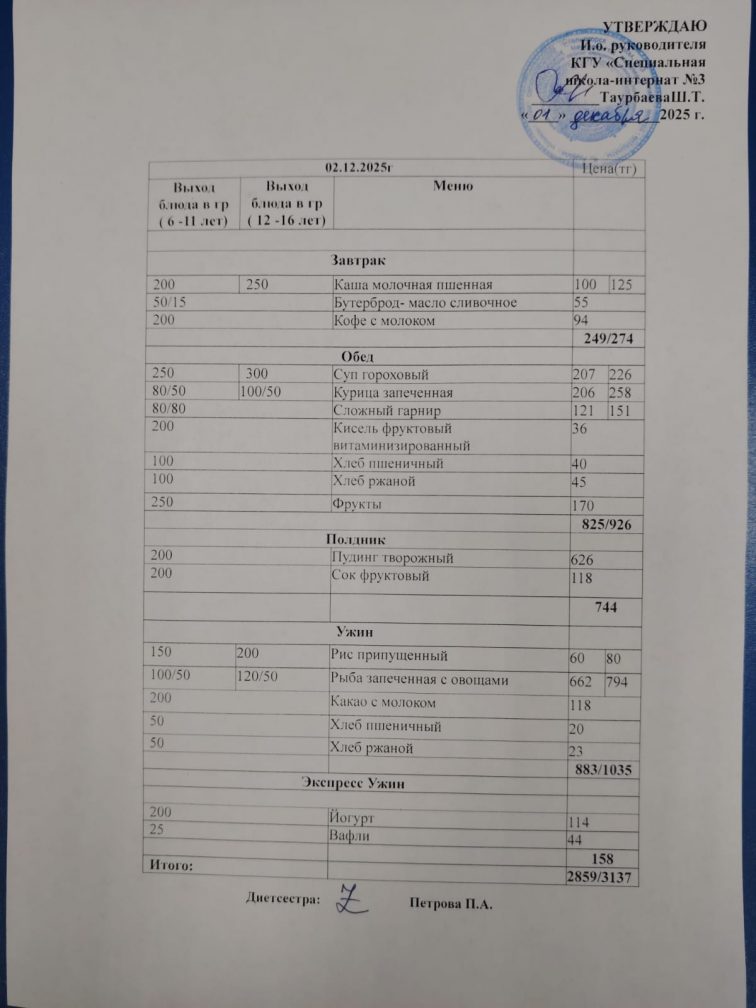 Мәзір 2 желтоқсан