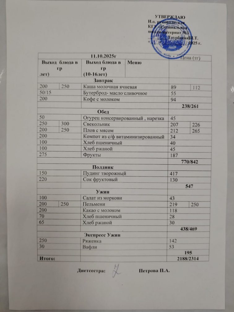 Мәзір 11 қазан