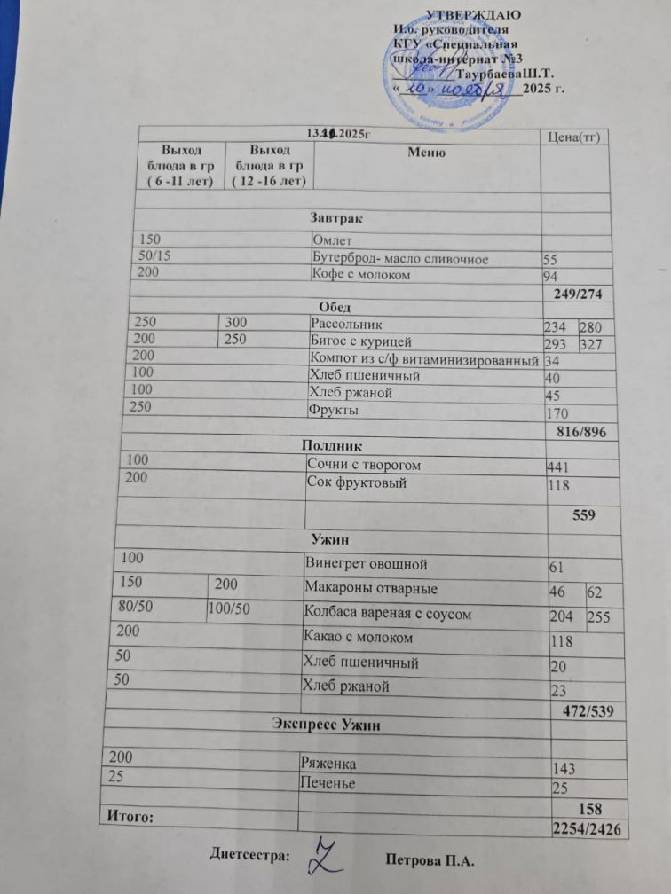Мәзір 13 қараша