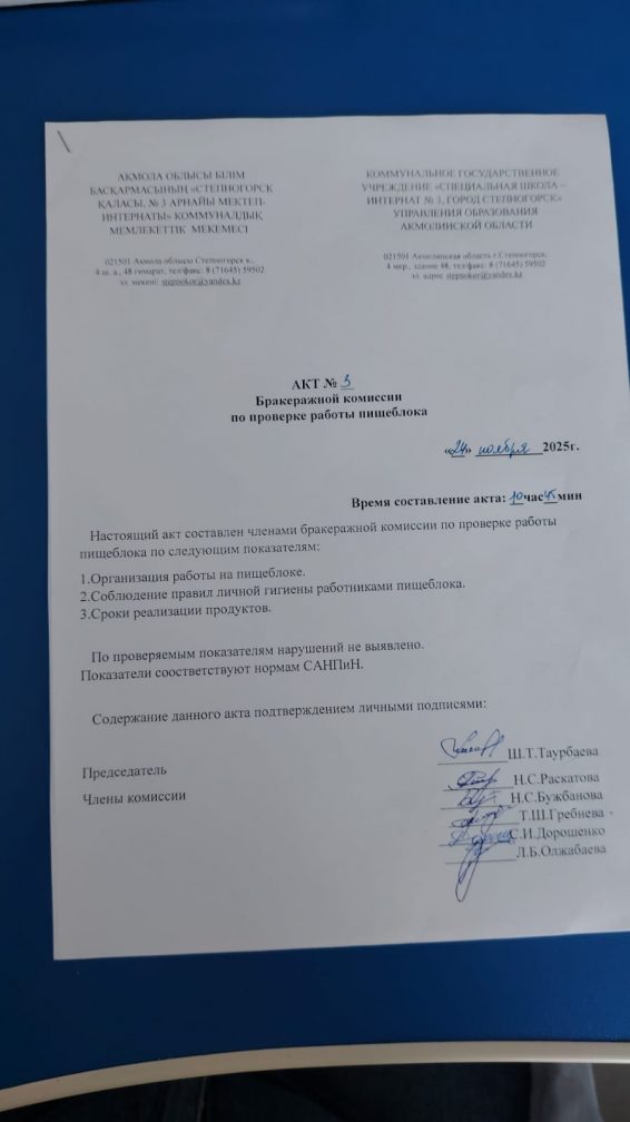 Акт бракеражной комиссии №3 от 24.11.2025г.