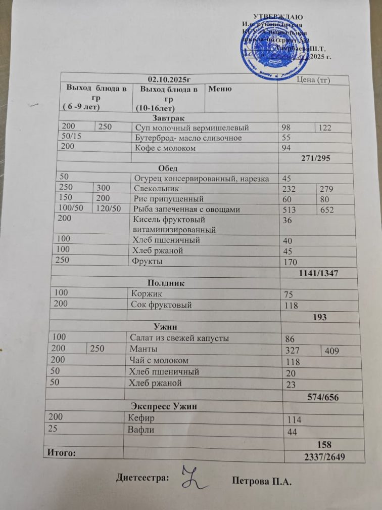 Мәзір 2 қазан