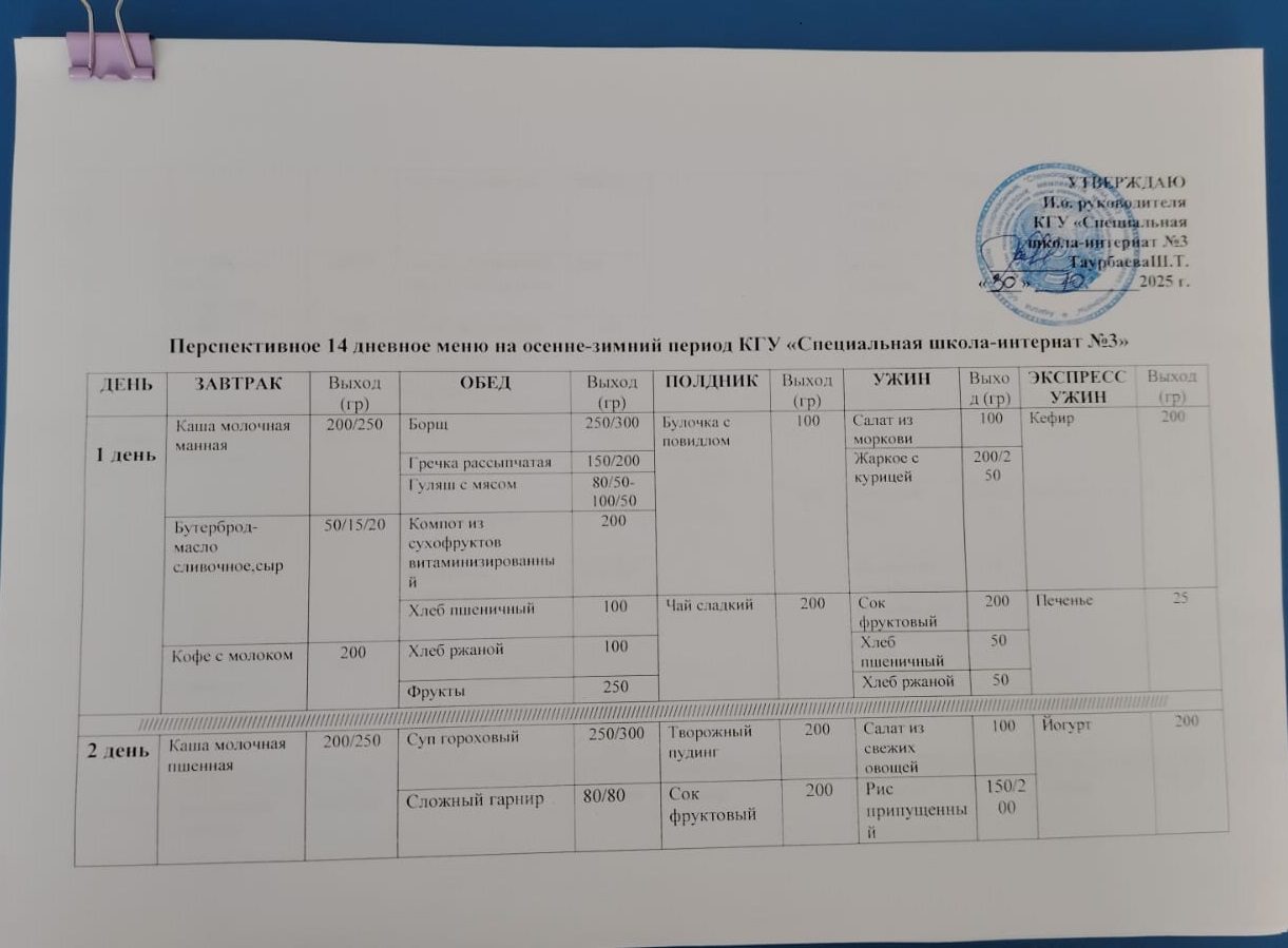 Перспективное 14-дневное меню на осенне-зимний период 2025-2026 уч год